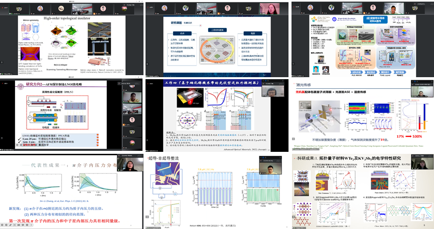 学院党委书记高翔、副院长蔡志匡、系主任方玉明教授、张瑛教授、学院团队负责人、高层次人才教师代表和部分青年教师参会。来自美国莱斯大学、德国弗莱堡大学、西班牙巴塞罗那自治大学、日本理化学研究所、沙特阿卜杜拉国王科技大学、清华大学等海内外知名高校、科研院所的32名优秀青年学者在云端参会。