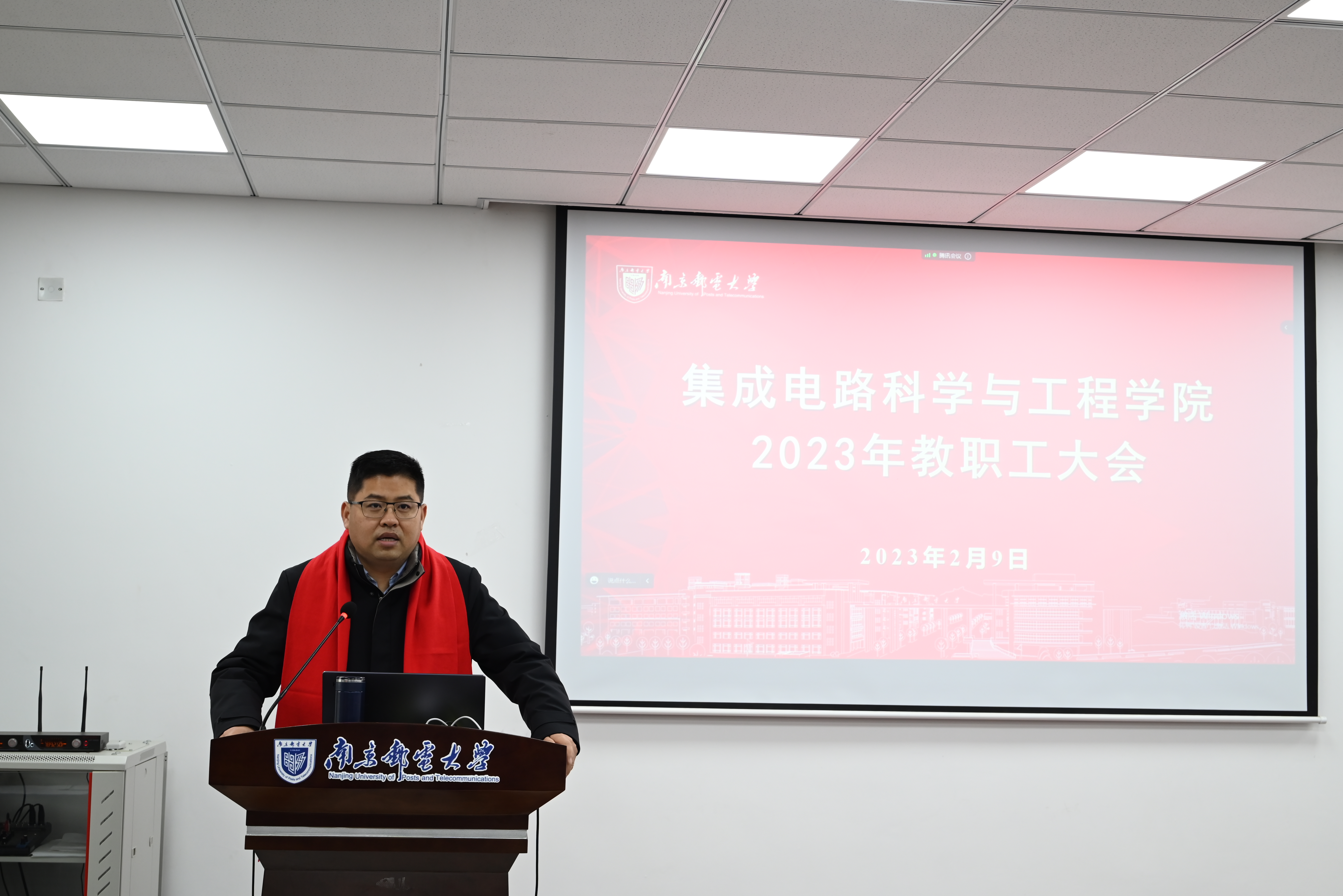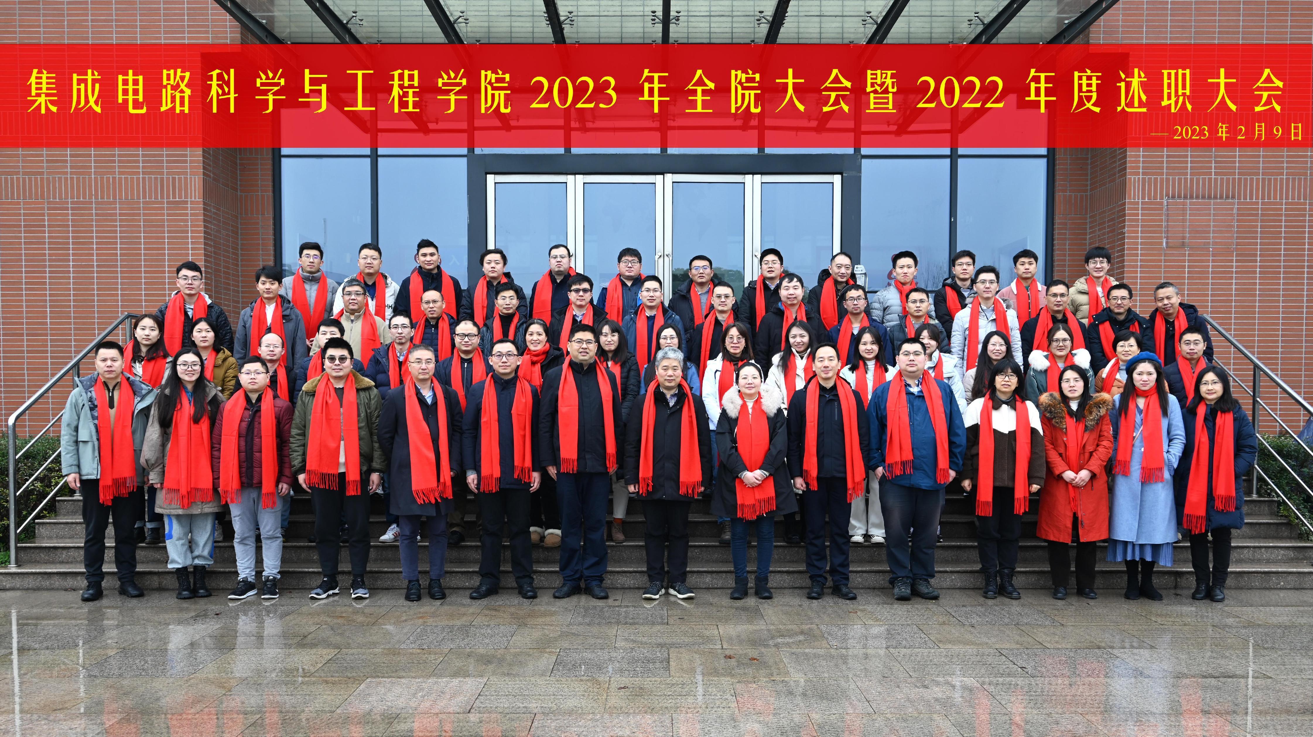 2月9日,集成电路科学与工程学院2023年全院大会暨2022年度述职大会在3号学科楼B322会议室线上和线下同时举行。校党委常委、副校长、学院院长郭宇锋,学院党委副书记乔祖琴,副院长蔡志匡,副院长肖建和全体教职工出席大会,学院党委书记高翔主持会议。