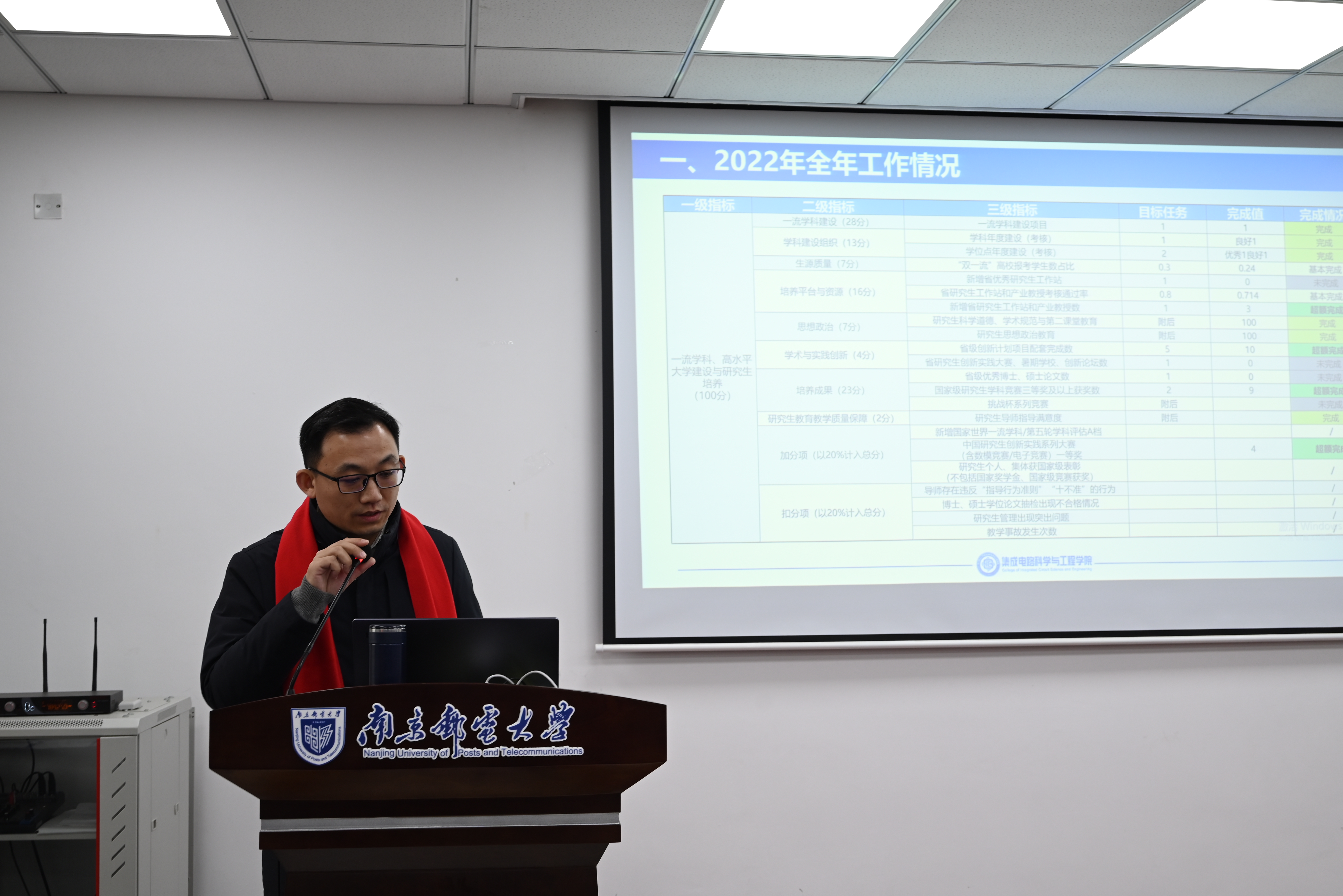 学院党委副书记、副院长乔祖琴,副院长肖建分别对分管工作汇报了新学年的目标和规划。2022年新进教师作了自我介绍,其余教职工结合本职工作,逐一汇报了2022年的工作以及对2023年的规划。