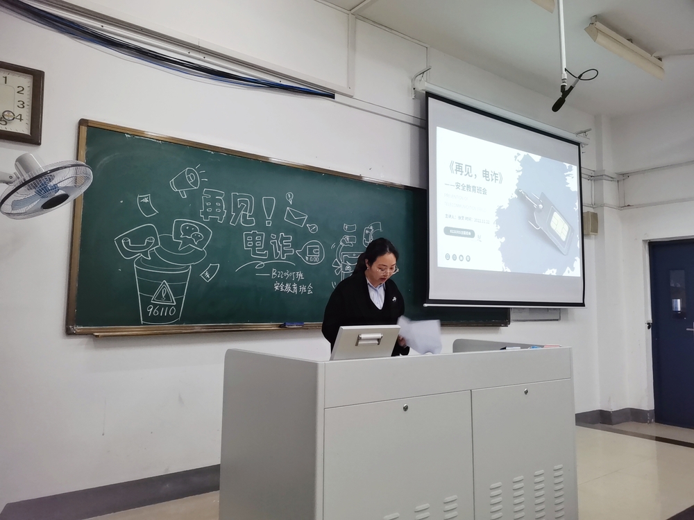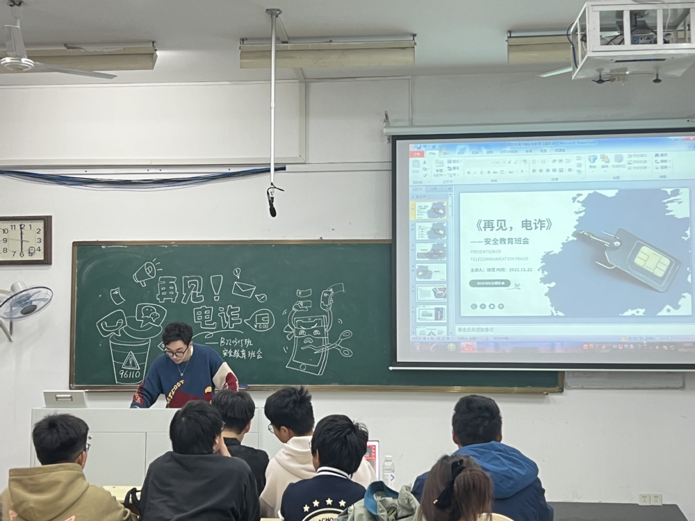 班会伊始,乔书记指出我校历来重视防诈教育的原因及重要性,尤其是对于当代大学生来说,更应该提高防诈骗意识,完善自我保护体系。