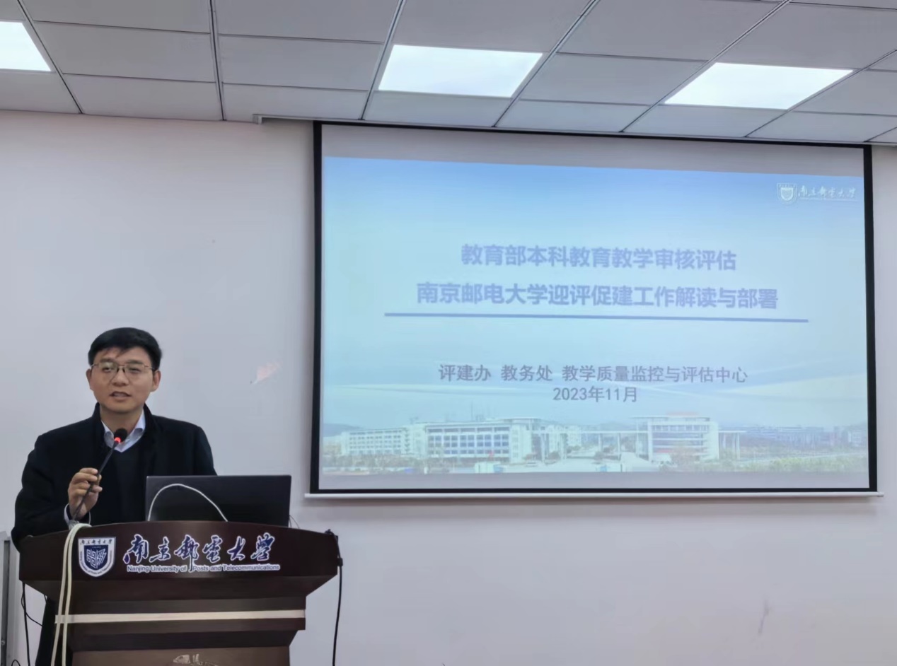 刘允主任应邀为参会教师详细解读了新一轮审核评估方案。刘主任指出了本次评估与以往的不同和新一轮审核评估的要求,详细阐述了本轮评估的审核评估指标内涵、学校工作方案及进度、以及学院评估与自评自建的要求等问题。刘允主任重点介绍了校方当前的工作安排。学校已成立69书吧 评建工作领导小组,并以六个部门牵头制定了工作方案和进度计划。同时刘允主任提出了学院评估与自评自建的工作要求,学院要以此做好迎评促建工作、总结凝练学院特色、制定学院工作计划。