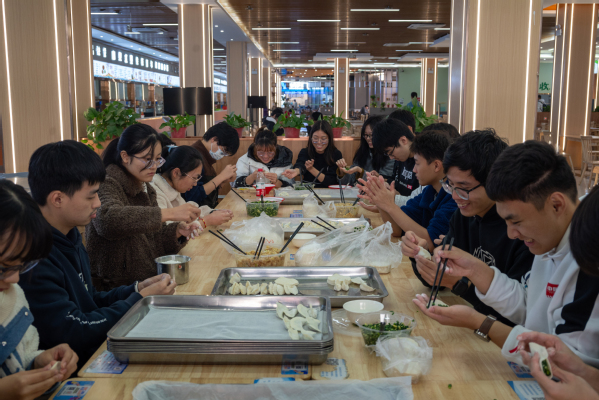 为了让紧张备考的学子能够吃到一份热气腾腾的饺子,学院领导、辅导员、院青协成员和2020级保研同学组成“包饺子小组”,小组成员中午就早早来到南一食堂,有条不紊地使用事先准备好的饺子皮和馅料忙碌起来,本次所包的饺子有三种馅料:白菜猪肉馅、韭菜鸡蛋馅和橙子糖果幸运馅。肉在古代是富有的象征,肉馅饺子祝愿学子学富五车;白菜在如今有能轻易取得的理解,白菜猪肉饺子祝愿学子克服困难顺利读研;韭菜有“久才”的谐音,韭菜鸡蛋饺子祝愿学子经过长久的艰辛备考都能成为报国之才;橙子寓意心想事“橙”,糖果寓意甜甜美美,橙子糖果饺子祝愿学子心想事成、大吉大利。在食堂厨师的指导帮助下,一个个形状各异的饺子被制作、蒸煮和打包,送到考研教室。随后,学院领导和辅导员将这些饺子分发给在场的备考学子,每一个饺子里,都蕴含着学院领导和老师对考研学子的关心和祝福。