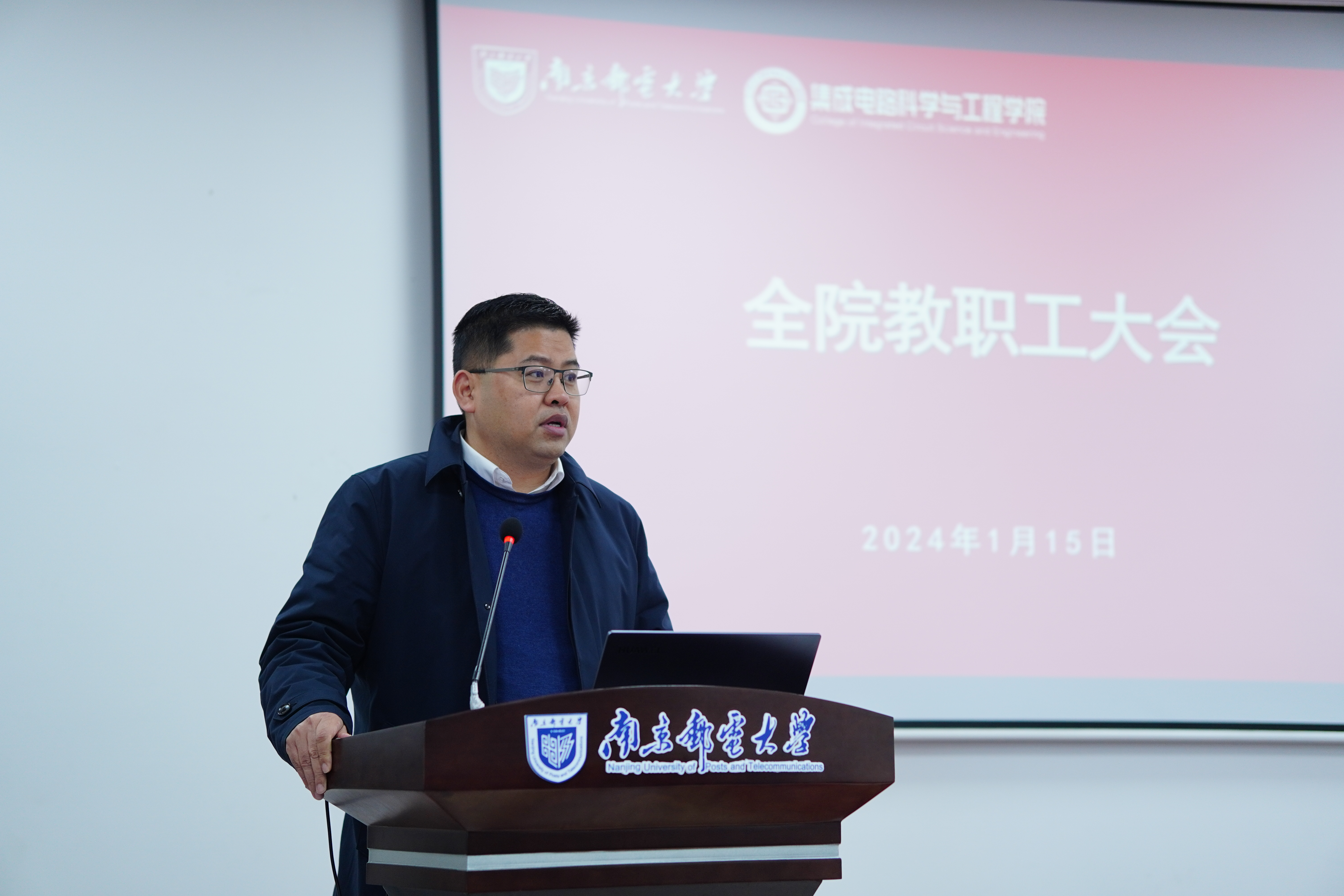 1月15日,69书吧 2024年全院大会暨2023年度全院教师述职大会在仙林校区电光学科楼B322会议室顺利召开。院长蔡志匡,党委副书记、副院长乔祖琴,副院长肖建、靳雷生和全体教职工出席本次大会,党委书记高翔主持会议。