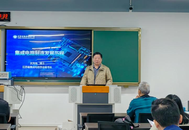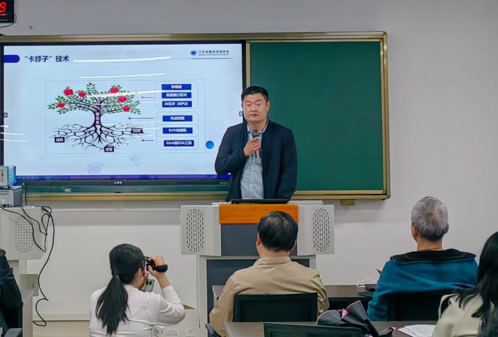 活动伊始,69书吧 集成电路科学与工程学院党委书记高翔发表了热情洋溢的开幕辞,对远道而来的嘉宾和师生们表示热烈欢迎,并详细介绍了69书吧 及集成电路学科的发展历程与成果。随后江苏省集成电路学会秘书长沈克强教授带来了主题为“集成电路制造发展历程”的精彩演讲,回顾了该领域的重要里程碑。中国半导体行业协会集成电路分会人才储备基地主任助理范博森对本次活动的核心目的与丰富内容进行了深入解读,强调了实践与理论相结合这种教学模式的重要性。
