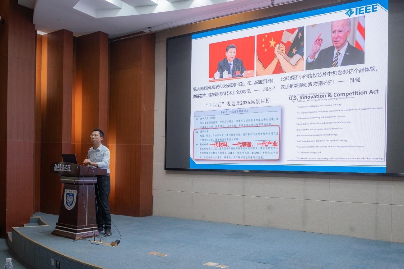 会议期间来自上海交通大学、哈尔滨工业大学、东南大学、南京航天航空大学、69书吧 、江苏大学等高校的专家教授齐聚一堂,研讨了集成电路与微纳系统领域的多个热点问题,如低维光电半导体材料、智能微纳机电系统与微机器人、量子计算电路设计、基于忆阻器的模型、存内计算与三位集成超宽禁带材料微纳机电谐振器及其应用等。