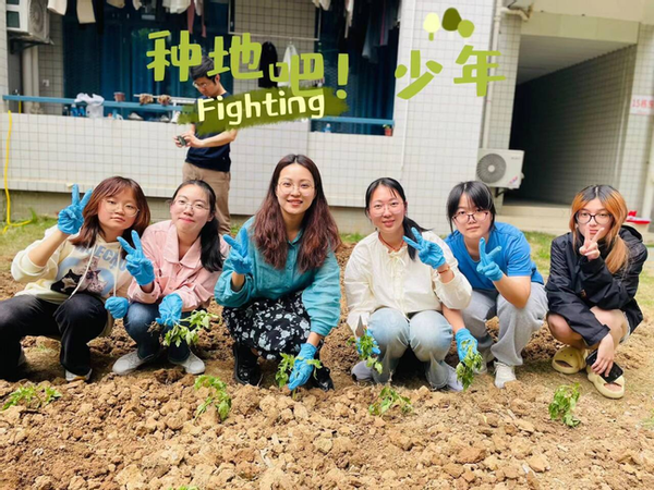 在宿管阿姨和老师们的指导下,同学们开始分为几组进行实践,每个小组都分配了不同的地块和农作物品种。同学们纷纷挽起裤腿,卷起衣袖,投入到紧张而有序的劳动中。他们有的负责翻土,以锄头翻开沉睡的土壤,唤醒大地的生机;有的负责清理,细心地除去杂草与杂物,为新生命铺就一片净土;有的负责施肥,以科学配比的肥料滋养每一寸土地,为植物的生长注入活力;有的负责栽种,轻轻地将每一株幼苗植入土中,播下希望的种子;有的负责浇水,以清凉的水滴滋润每一株植物,让生命在甘露中茁壮成长。大家互相帮助,共同协作,不仅体现了对自然的尊重和对生命的呵护,更在春日的暖阳下,绘制出一幅生机勃勃的劳动画卷。