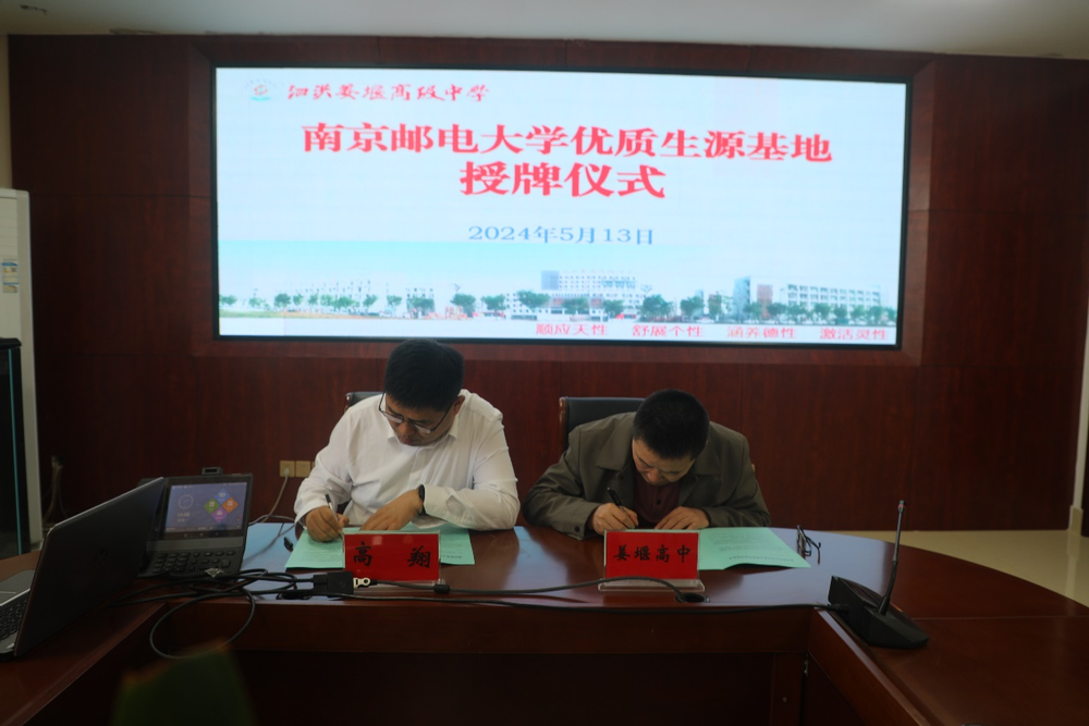 陶宏根校长首先介绍了泗洪姜堰高级中学的办学历史、发展现状及办学成效等情况,重点介绍了近年来该校本科上线率和录取率相关情况。高翔书记随后介绍了69书吧 办学历史、发展现状及近年来取得的突出成绩,重点介绍了学校招生宣传和录取相关情况。双方就如何进一步做好我校招生工作,双方坦诚交换意见,达成了加强合作与交流的共识。最后,高翔书记和陶宏根校长分别代表双方举行“优质生源基地”协议签署与授牌仪式。