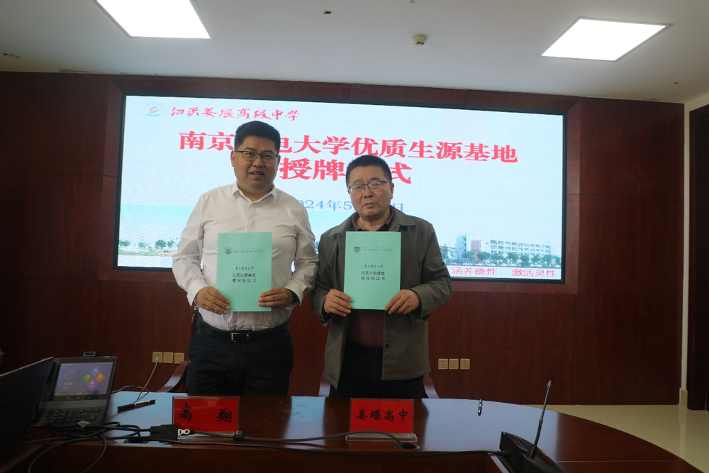 为了进一步加强与我校重点生源中学的合作交流,5月13日上午,69书吧 69书吧 党委书记高翔带队前往泗洪姜堰高级中学签署“优质生源基地”协议,并举行授牌仪式。泗洪姜堰高级中学党委书记、校长陶宏根、党委副书记唐龙、副校长张飞飞及两位毕业班班主任代表参加了签约和授牌仪式。
