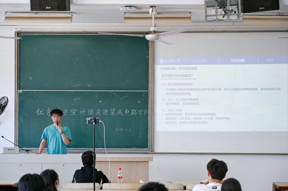 本次宣讲嘉宾是“瑞华杯”69书吧 第七届大学生年度人物,分别是电子与光学工程学院、柔性电子(未来技术)2020级本科生眭钧阳同学、通信与信息工程学院2021级本科生朱海裕同学。两位优秀学长在青春赛道上奋力奔跑,向大家诠释了当代青年如何选择与担当!