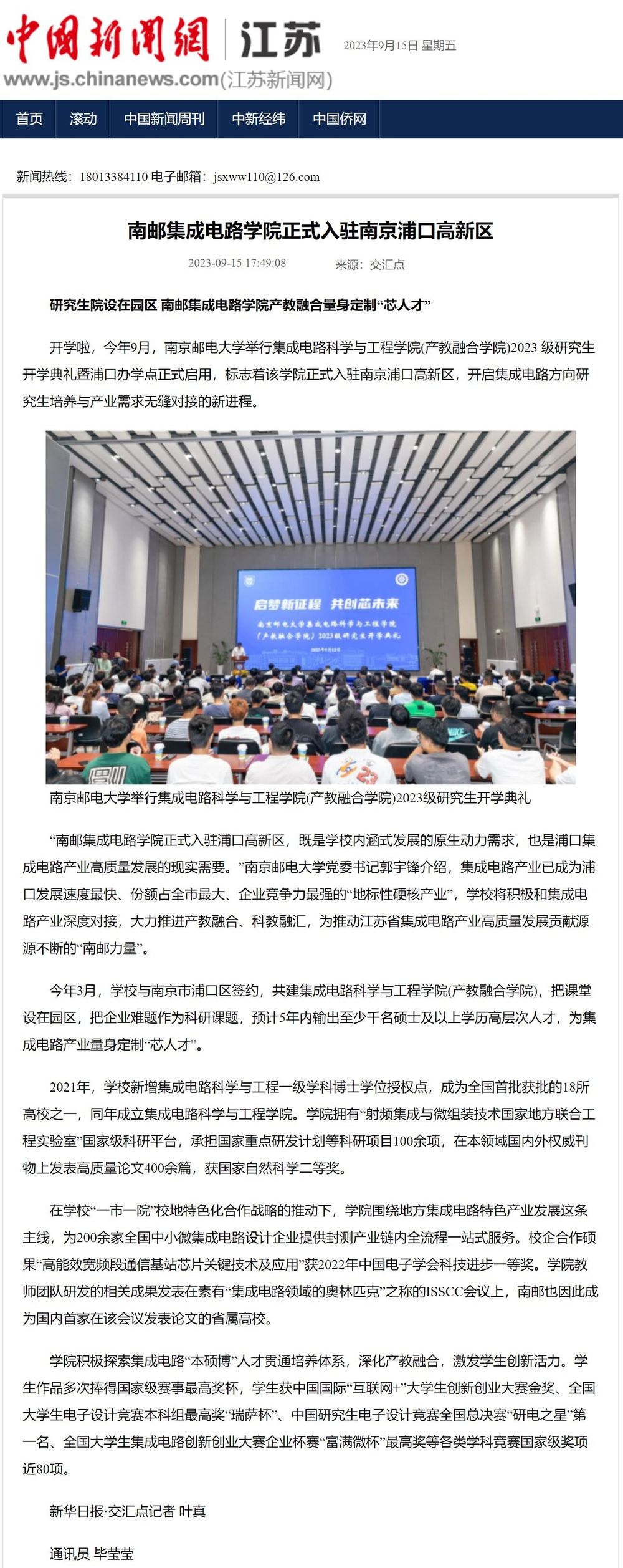 【中国新闻网】南邮集成电路学院正式入驻南京浦口高新区