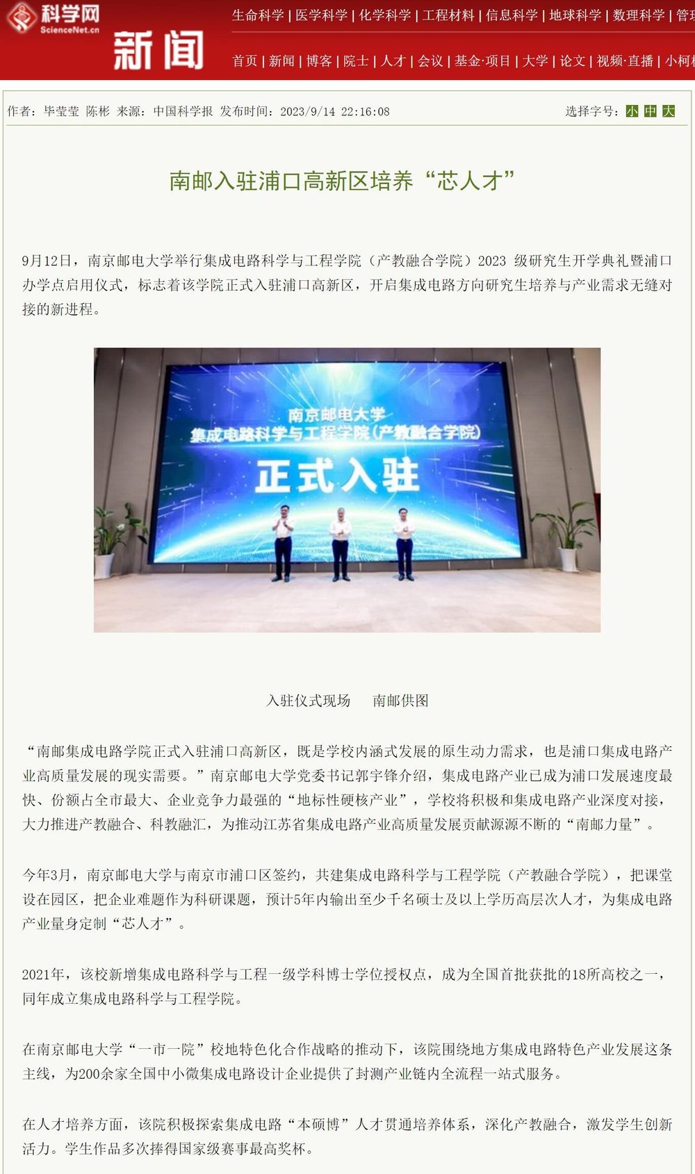 【科学网】南邮入驻浦口高新区培养“芯人才”