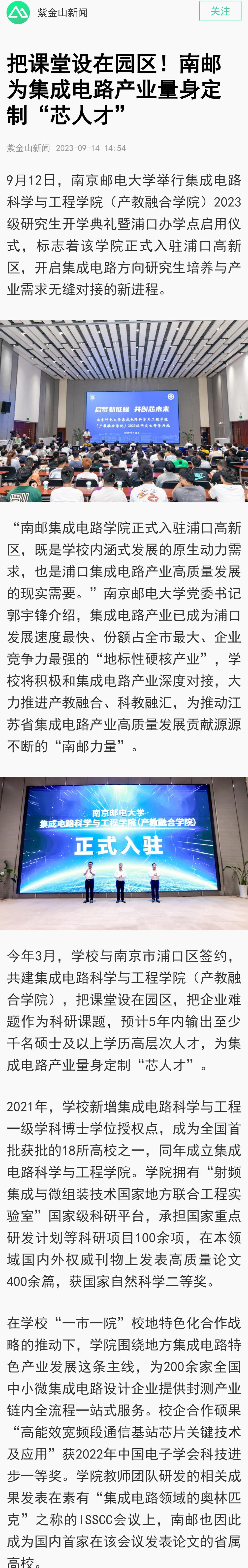 【南京日报客户端】把课堂设在园区!南邮为集成电路产业量身定制“芯人才”