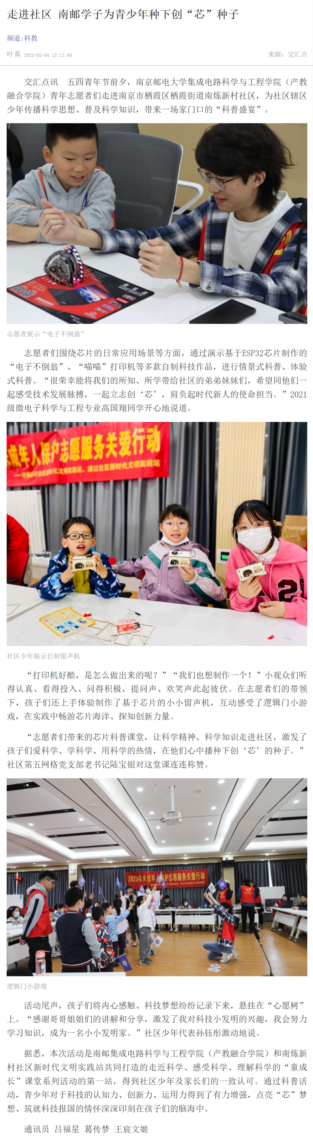 【新华日报客户端】走进社区 南邮学子为青少年种下创“芯”种子