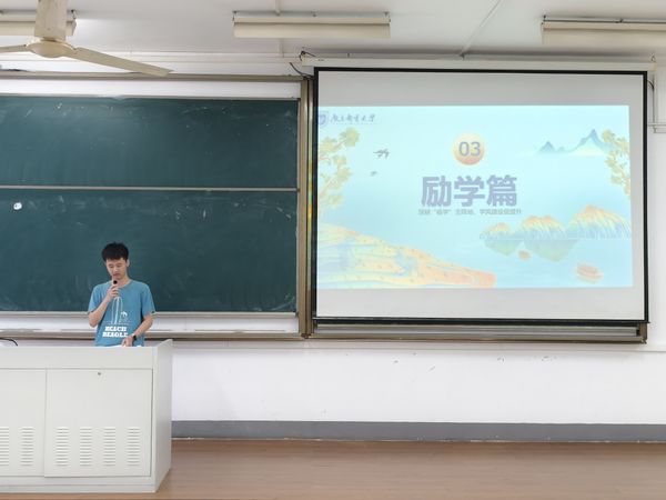进入“励学篇”,王辉老师带大家一起过了期末考试的具体安排,并着重强调了诚信教育的重要性。为了助力期末备考,本次年级大会特邀请了2021级优秀学子梁宇翔、潘柯宇、沈希舟为大家分享了专业课的备考经验和方法,从而使同学们能够明确复习思路,提高复习效率。同学们认真记录,逐步成为勤学乐学、目标清晰的集成青年。