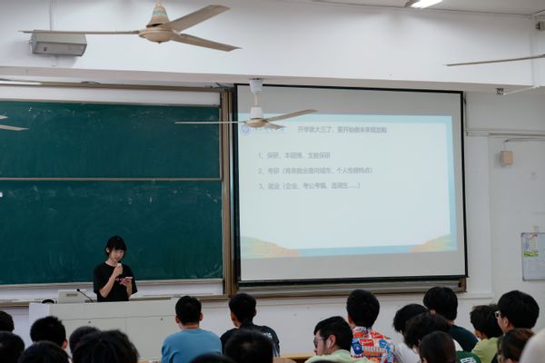 大二即将结束,意味着大学生活已过半,王辉老师提醒大家要开始思考未来的人生道路,鼓励大家根据自己的性格特点和发展意向,选择适合自己的发展赛道。最后,她以“我们目前已经收获了什么,未来又想要哪些成长和收获”这一问题收尾,鼓励大家积极思考!