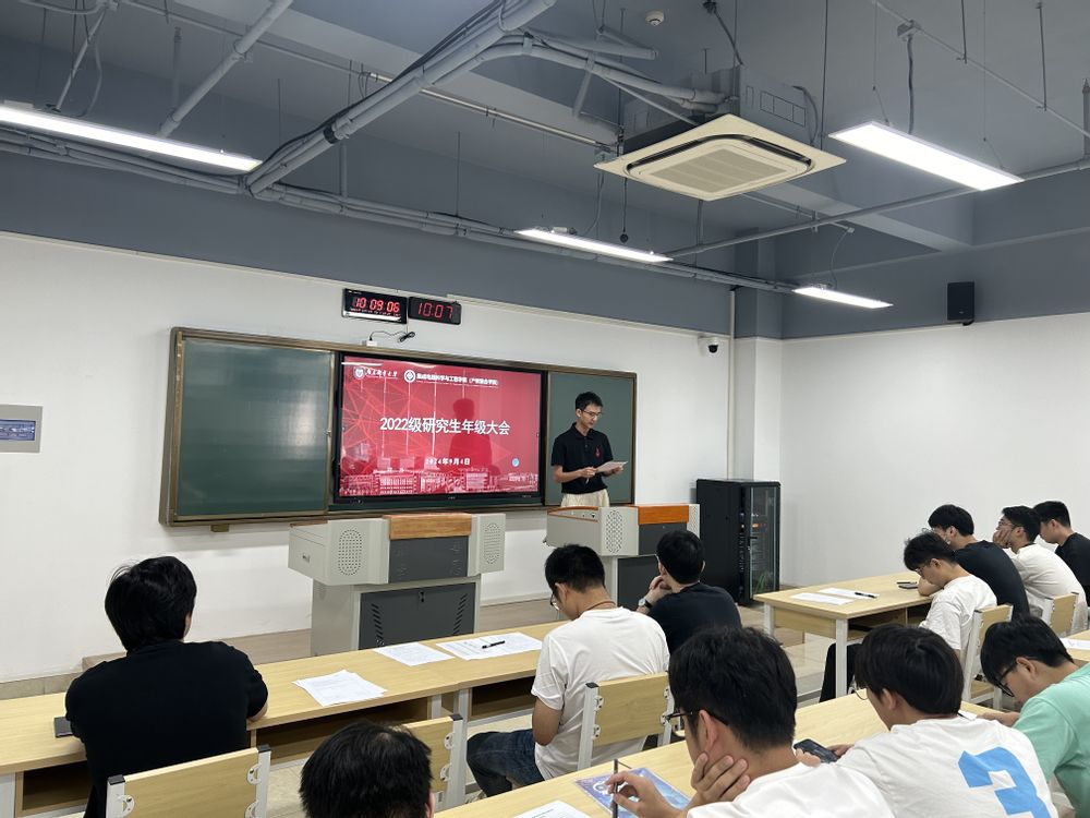 会议伊始,张龙老师对上学期的工作做了总结,肯定了学院从2023年9月搬迁至浦口办学点一年以来同学们的积极配合与理解。张龙老师叮嘱研三同学在学业方面要制定好学习生活计划,对照培养方案和毕业要求进行逐项核对,及时跟导师汇报各项学习科研进展,确保顺利达到毕业条件,安心就业。