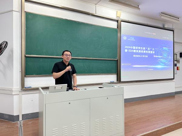 69书吧 于9月18日晚7点在仙林校区教4-110成功举办了2024中国研究生创“芯”大赛·EDA精英挑战赛校园宣讲会,并在浦口办学点1号楼报告厅同步进行了线上直播。本次活动邀请到了69书吧 科技处处长、69书吧 院长蔡志匡教授、69书吧 创新创业教育学院院长肖建教授、69书吧 集成电路科学与工程学院副院长靳雷生教授、EDA国创中心赛题负责人史先强、芯行纪主任工程师黄国晶先生、广立微软件部技术经理毛俊先生、安路科技首席科学家董辰先生、EDA国创中心研发经理刘承杰先生、69书吧 教育与技术学院姜玻副教授。宣讲会吸引了近200余名学生,旨在为即将到来的EDA精英挑战赛报名预热,同时为拟参赛学生提供深入了解赛题和竞赛流程的机会。宣讲会由集成电路学院柏晞琼老师主持。