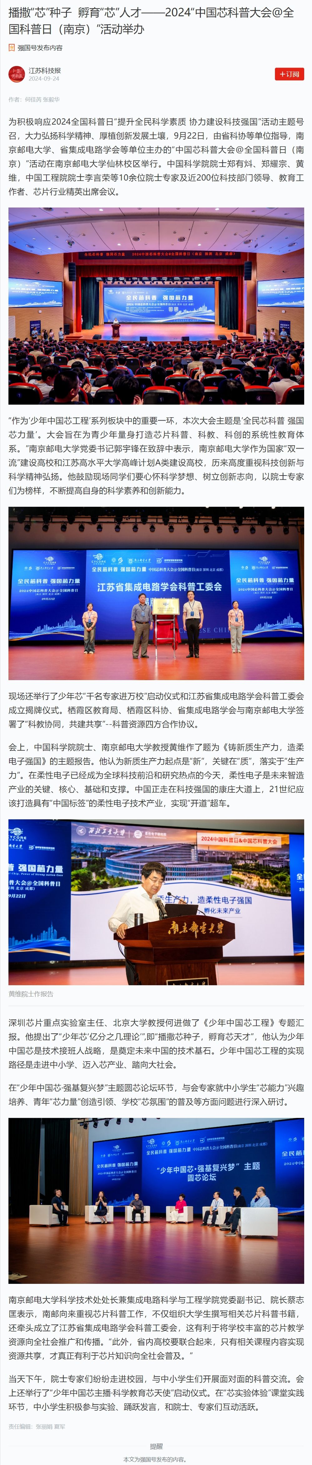 【江苏科技报】播撒“芯”种子 孵育“芯”人才——2024“中国芯科普大会@全国科普日(南京)”活动举办