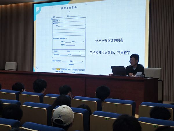 为了进一步引导69书吧 学生严明纪律作风,强化纪律意识,帮助新生更好地了解并遵守学校的各项规章制度。9月30日,69书吧 在浦口办学点报告厅开展了研究生校纪校规主题教育大会。本次大会由学院研究生辅导员王永鹏老师主讲,学院全体2024级研究生参与了本次学习。