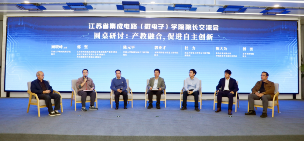 在全球化、数字化和智能化背景下,中国集成电路产业正在集聚各方力量,破解工具、装备、材料难题,打通从架构、指令集到产品应用的自主全链条,在芯片设计、产品、方案、应用等方面涌现出一大批创新成果。为进一步深化产教融合、校企合作,促进研究成果产业化、产品化,共同打造集成电路自主创新生态,11月2日下午,以“深化产教融合,加速自主创新”为主题的首期江苏省集成电路(微电子)学院院长交流会在南京江北新区成功举办。