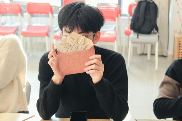 B24030321陆家轩:我在折纸与交谈中获得了许多乐趣。折枫叶的过程中,时间慢了下来,此刻我不再为繁忙的学业所焦虑,用心感受着秋日大学生活的丰富美好。在与同学们、学长们的密切交谈中,我也吸取了学长们宝贵的学习经验,同时结交了新朋友。本次活动让我感受到了同学们对彼此的关心与爱,也让我更加感受到了南邮这个大家庭的温馨。