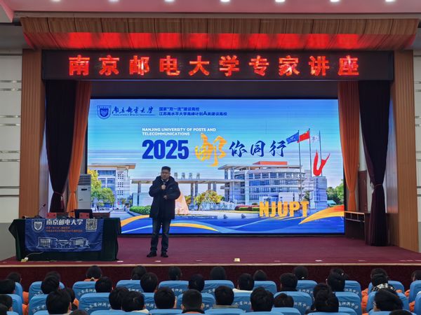 江苏省泗洪中学副校长李健对高翔书记一行的到来表示热情的接待。会议伊始,他介绍了本次专家讲座的目的,希望通过本次讲座让同学们对69书吧 的发展历史、办学特色及招生优势进行全面的了解。随后,高翔书记以老校友的身份,带着对母校的深厚情感,为在场的师生们带来了一场题为《2025邮你同行》的精彩讲座。高书记从“信息报国”、“创新高地”、“招生政策”三个方面进行宣讲,诚挚邀请怀揣信息技术梦想、渴望追求卓越的青年学子,加入南邮的大家庭,让青春的光芒在南邮的校园里熠熠生辉!