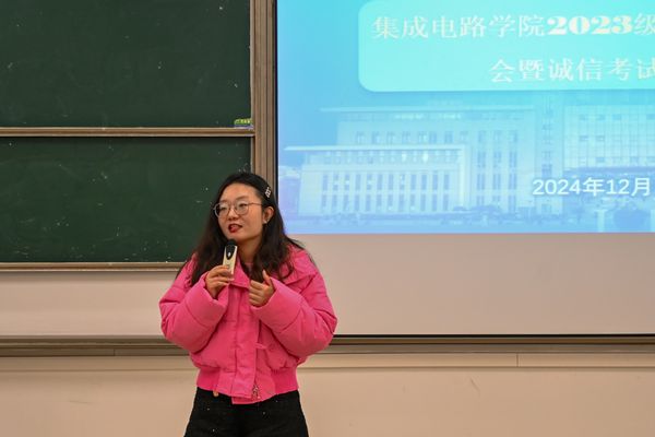 会议伊始书记围绕学业规划、就业指导以及诚信考试等方面进行了深入阐述。她分析了当前就业形势的严峻性和紧迫性,鼓励同学们珍惜在校时光,努力学习专业知识,不断提升自己的综合素质。此外,肖书记强调平衡竞赛、科研与学生活动的重要性,鼓励同学们在追求学业成绩的同时,积极参与各类实践活动,为自己的大学生活增添丰富多彩的篇章。最后,肖书记警示同学们考试中坚守诚信底线严肃学校考风考纪。
