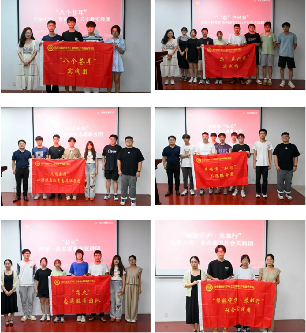 肖书记与四位老师共同为学院重点立项8支团队授旗。各团队接过旗帜,是方向、是责任、是力量。他们已整装待发,将以饱满的热情投入实践。