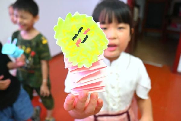 为了使“心理韧性”具象化,沉浸体验回弹的力量,团队开设了“动物弹弹乐”的手工团辅课程,由志愿者王雅楠带领。雅楠姐姐说到,我们可以把自己看成弹簧,遇到挫折弹簧会被挤压,但是我们要能够积极回弹,这就是心理韧性。然后,她耐心带领大家一步步画形象、剪轮廓、叠骨架,最后粘贴成型,精美的弹弹乐作品就完成啦!