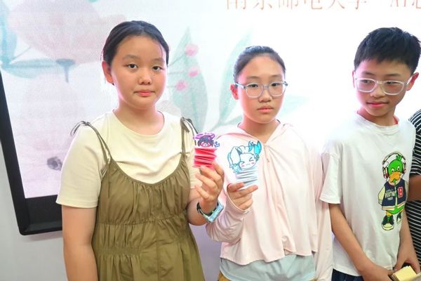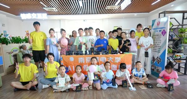 最后,便是小朋友们最为期待的挑战之旅。团队成员精心设计了本次心理实践特色活动——“AI芯奇旅”游园会,采用盖章打卡的形式,将丰富有趣的心理小游戏串联,多方面培养小朋友们的积极心理品质。团队为所有关卡都挑战成功的小朋友准备了精美的南邮文创礼盒,印有南邮元素的钥匙扣、笔记本、明信片等。
