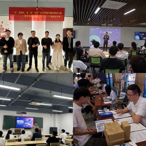 资源转化应用小欢‘芯’导学·思政空间围绕集成电路学科“卡脖子”技术,组织产业师资开展针对性活动,将学科科研成果、实验平台等转化为育人资源,提升研究生实践与创新能力。建成2个校内外实践基地,转化实验平台资源4项,开展行业专家讲座6场,参与学生达600余人次。“芯”途职规团整合校企资源,紧扣“就业优先”战略,牵头创办简历设计大赛、模拟面试大赛等一系列比赛,通过高度还原“结构化面试”“压力面试”“技术答辩”三大实战场景,重点考察学生专业素养、抗压能力与创新思维。