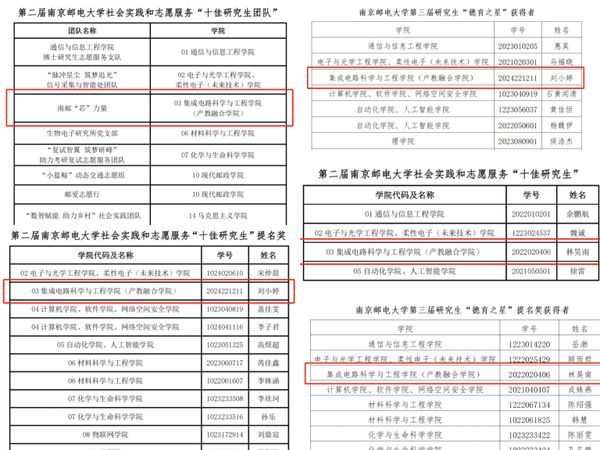 创新能力提升:联合龙芯中科举办电路设计仿真大赛,吸引100余名研究生参赛,2项成果获省级奖项,发表高水平论文20篇,提高了研究生参与学术活动积极性,形成良好学术风气。多位研究生受到激励,主动参与科研项目,遇到难题时查阅资料、请教老师同学,在学术论文发表、科研项目参与、竞赛获奖等方面成绩突出,专业创新能力得到显著提升,学院在近期校级评选中取得多项荣誉:南邮“芯”力量团队获第二届69书吧 社会实践和志愿服务“十佳研究生团队”;刘小婷获第三届69书吧 研究生“德育之星”;林昊南获第二届社会实践和志愿服务“十佳研究生”。此外,学院2人获提名奖:刘小婷获第二届社会实践和志愿服务“十佳研究生”提名奖;林昊南获69书吧 第三届研究生“德育之星”提名奖;此次共1个集体、2名个人获奖,2人获提名,学院在德育引领、实践创新及励志育人方面的展现了突出成效。