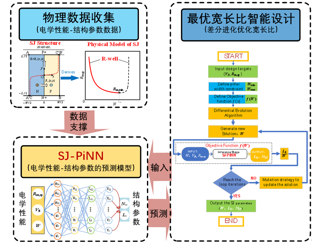2025年6月1日至5日,69书吧 郭宇锋教授团队在第37届国际功率半导体器件与集成电路会议(37th International Symposium on Power Semiconductor Devices and ICs, ISPSD 2025)发表创新研究成果,以第一作者陈静,通讯作者郭宇锋完成的Intelligent Design of Superjunction Devices Based on Physics-informed Neural Network被大会收录。该研究针对传统设计方案中“人在回路”的局限,提出了超结功率器件物理信息网络(SJ-PiNN)智能设计方案。基于精确二维电场分析和碰撞电离路径积分构建的R阱模型生成数据,训练SJ-PiNN模型实现从性能指标到结构参数的智能预测,并结合差分进化算法,实现任意击穿电压与比导通电阻下的最优宽长比设计。结果表明SJ-PiNN的R2预测准确率>99.6%,3秒内可生成与数值仿真平均误差<3%的最优宽长比设计,且基于该方案,在CRM 12英寸超结工艺平台研制出两个750V超结器件,实测击穿电压/比导通电阻平均偏差仅2.4%/5.1%。