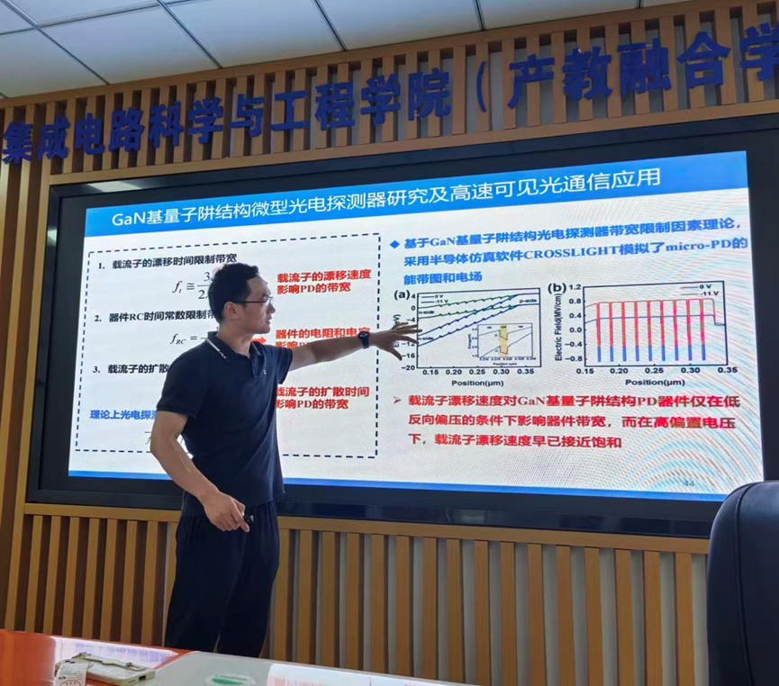 7月26日下午,复旦大学教授、博士生导师、国家级青年拔尖人才田朋飞教授应69书吧 邀请在仙林校区电光科学楼B223会议室作题为“基于氮化镓micro-LED及探测器的高速光通信系统”的学术报告。报告由朱刚毅副教授主持,20余位学院师生参加活动。
