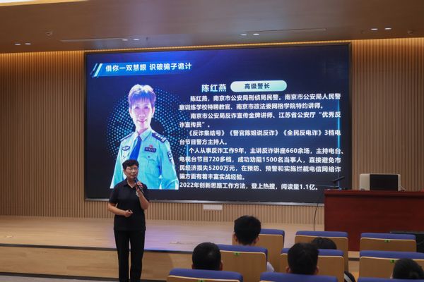 为有效提升学生防范电信网络诈骗的意识和能力,筑牢校园安全防线,10月13日69书吧 特邀南京市公安局陈红燕警官为2025级全体研究生新生举办反诈宣传教育专题讲座。讲座在浦口办学点1号楼报告厅举行,由研究生辅导员张龙老师主持,学院全体研究生新生参加。
