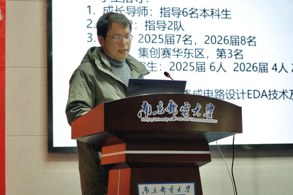 高翔书记从“铸魂固本强根基 深化思想理论武装”、“履职赋能促融合 提升党建工作质效”、“正风肃纪守底线 压实从严治党责任”四个方面总结了过去一年学院党建工作成果,并对2026年的党建工作做出了三点部署,一是要深化融合机制,释放党建赋能效能,聚焦集成电路产业发展需求,拓展“党建+产业链”融合广度;二是要优化教育管理,锤炼过硬党员队伍,将师德师风建设与学术道德教育紧密结合;三是要强化支部建设,激发基层组织活力,鼓励各支部结合自身特点打造特色党建品牌,创新组织生活形式,推动基层党支部全面进步、全面过硬。