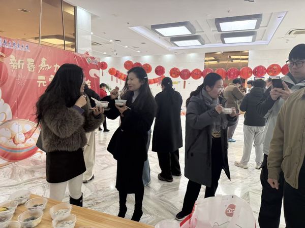 活动现场张灯结彩,洋溢着浓厚的喜庆氛围。一排排红彤彤的灯笼高高挂起,点缀出属于传统佳节的独特韵味。伴随着现场的欢声笑语,一碗碗热气腾腾的汤圆被端送到同学们手中。甜蜜的汤圆不仅让大家品尝到了节日的滋味,更传递了学院对研究生们在新的一年里圆圆满满、生活甜美的美好祝愿。